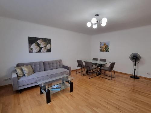 Apartamentul este spațios, luminos și amenajat cu atenție la detalii, oferind un design modern și o atmosferă relaxantă. Dispune de dormitor confortabil, living elegant, baie privată cu duș și o chicinetă complet utilată, ideală pentru un sejur de scurtă sau lungă durată. Aerul condiționat, WiFi-ul gratuit și televizorul cu ecran plat asigură tot confortul de acasă.